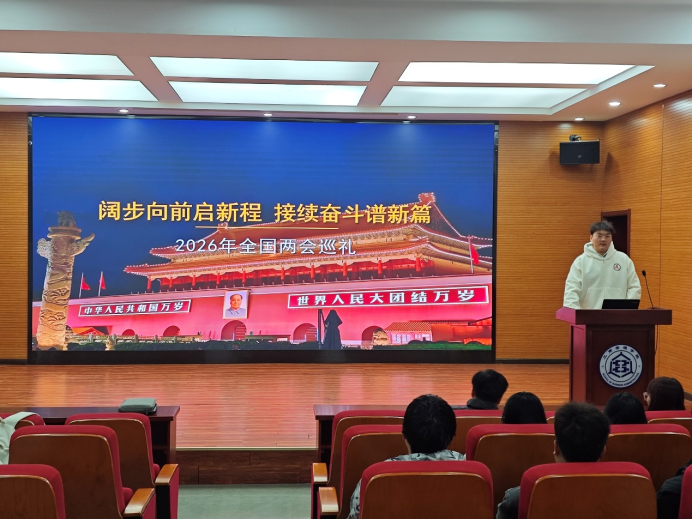 2025级工商管理学学硕研究生王喆在微党课上深入解读了2026年全国两会精神,从两会召开的时代背景、核心议程与重要成果、精神内涵与实践要求三个方面展开分享。他首先介绍了2026年全国两会在“十五五”开局起步关键时期的重要意义,会议审议审查“十五五”规划纲要草案、政府工作报告及三部法律草案的核心议程,解读了“经济增长4.5%-5%”等开局之年发展主要预期目标,以及规划纲要草案中20项主要指标、6方面109项重大工程项目的部署安排。随后,他重点讲解了习近平总书记在两会期间的重要讲话精神,围绕树立和践行正确政绩观、推动高质量发展、全过程人民民主实践、民生保障与法治建设等关键内容,剖析了两会彰显的“实干为民、实干兴邦”理念,以及生态环境法典、民族团结进步促进法、国家发展规划法三部法律草案审议的法治意义。最后,他结合两会中代表委员的建言献策,分享了两会在推动产业升级、乡村振兴、民生改善等方面的具体举措,让在场研究生深刻领会全国两会作为凝心聚力、团结奋进大会的时代价值,以及其为 “十五五” 经济社会发展指明的前进方向。