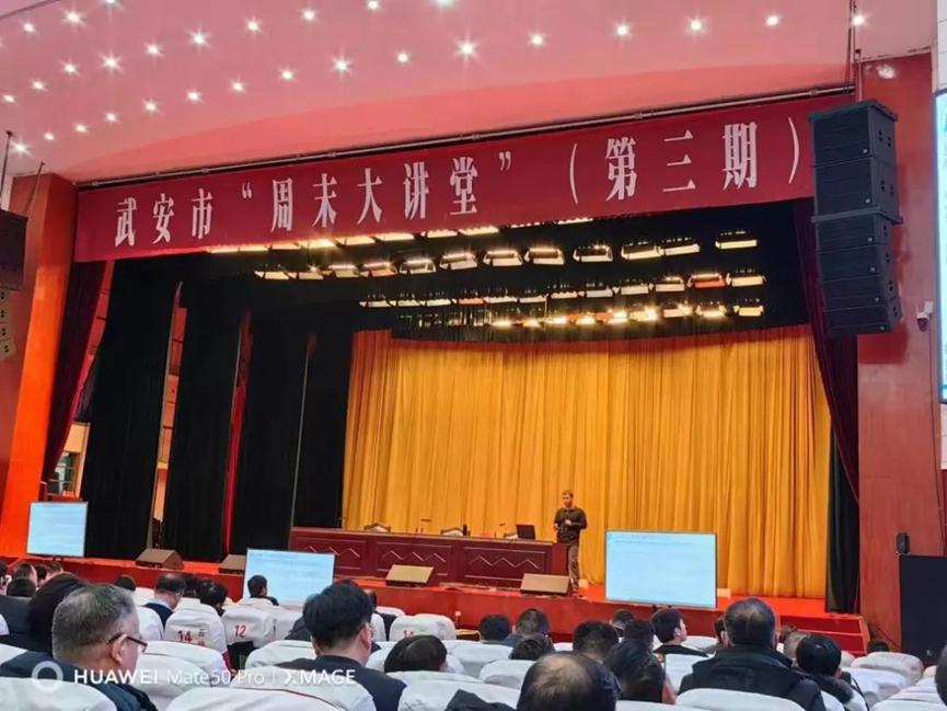 1月28日上午,武安周末大讲堂第三期开讲,必赢565net官网刘东华博士应邀授课。讲座以广电网络视频形式进行,武安市委书记刘浩峰等四套班子领导,各市直单位主要负责同志,各乡镇党委书记,工业园区党工委副书记,各相关单位中层以上干部,各重点企业负责人在武安宾馆主会场聆听讲座;各乡镇、工业园区领导班子成员和中层以上领导干部在分会场聆听讲座。武安市市长董志毅主持并讲话。
