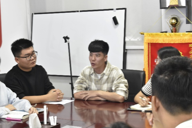 座谈会上,两位员工代表先后发言。必赢565net官网团学融主席团成员张渝晨表示,不仅要认真学习“开学第一课”精神,更要做校史文化与朋辈力量的传播者和践行者,以“扎根”与“传递”为重心,争做与时代同行的“新经贸人”。员工党员胡国庆表示,将牢记李书记嘱托,以昂扬姿态践行“强国有我”的誓言,在思想引领和服务同学中坚守初心,通过朋辈互助实现共同成长,展现青年担当。随后,同学们结合个人体会,从专业学习、责任担当、校史传承等角度分享心得,表达了夯实专业基础、践行使命担当、传递青春力量的决心,体现了工商学子在思想与行动上的深刻感悟与成长规划。