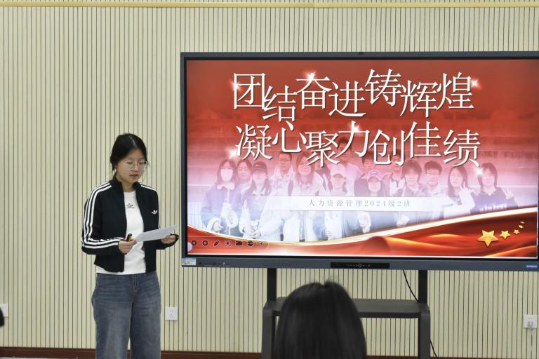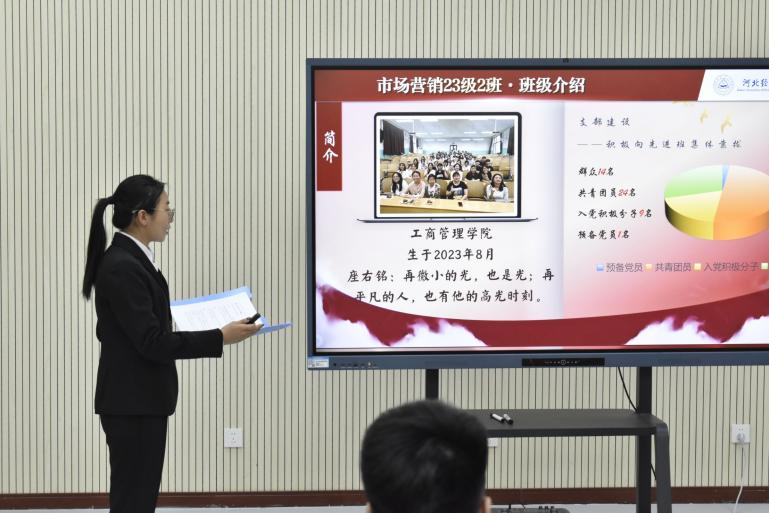 活动伊始,主持人杨佳烨对莅临现场的各位领导、评委老师及员工代表致以热烈欢迎,并简要介绍了本次先进班集体评选活动的目的、意义、评选标准与流程。在展示环节,2023级市场营销2班等竞选班级发言人依次上台,围绕思想建设、学业发展、志愿服务与班级氛围等多个维度,全面呈现了各班在集体建设中所取得的丰硕成果。他们结合生动鲜活的案例与详实数据,不仅展现了扎实的学风与积极的思想面貌,更分享了班级在志愿服务与社会实践中的感人故事,以及温馨融洽、互助共进的班级氛围,充分彰显了新时代大员工团结奋进的班级氛围以及担当有为的社会责任感。