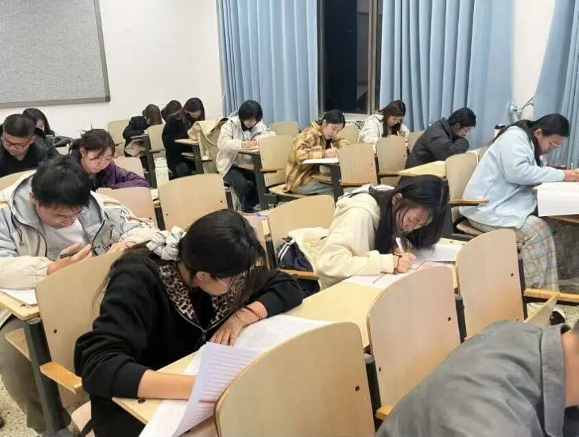 赛前,工作人员以专业严谨的态度完成考生身份核验、签到引导、纪律宣贯等筹备工作,确保每位选手明晰规则、从容应考。同学们以赛为镜,校准职业航向,将“为人民服务”的初心融入答题思维,在竞技中锤炼“家国情怀+专业素养”的复合能力。随着开考指令响起,赛场瞬间凝为无声战场:选手们屏息凝神,精准作答,以笔为剑,在限时挑战中展现扎实的知识功底与应变能力。监考与考务团队严守流程,从试卷收取到密封归档,全程规范操作,确保成绩公平公正。