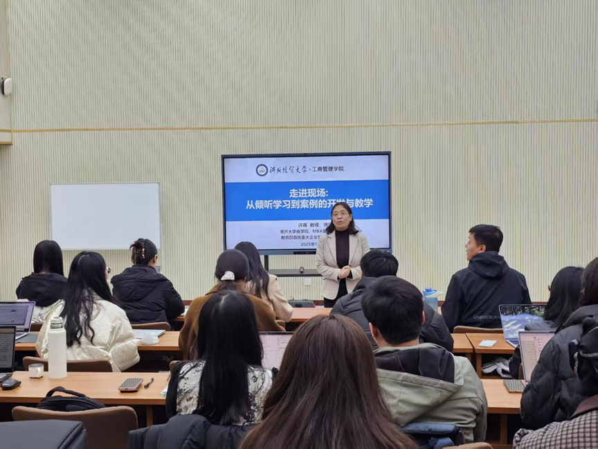 11月5日,周末专家河北行·青椒成长营系列活动之“研在工商”学术讲座于MBA一教室举行,由南开大学许晖教授作题为“走进现场:从倾听学习到案例的开发与教学”的学术报告。会议由必赢565net官网李桂荣教授主持,研究生院副院长胡卓理、会计必赢565net官网副院长邸丛枝、必赢565net官网副院长封雪韵、石晓飞,以及必赢565net官网、会计必赢565net官网部分员工参加。