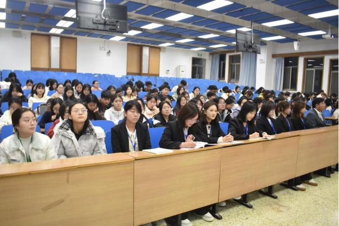 活动伊始,陈彦彤详细介绍了宣讲会的举办背景与核心流程,强调“挑战杯”竞赛作为展现青春智慧的重要平台,对提升员工实践能力、突破自我边界的重要意义,鼓励同学们认真聆听、积极汲取经验。