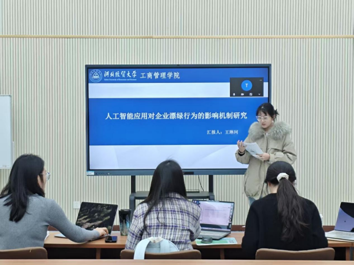 汇报人王琳珂以“人工智能应用对企业漂绿行为的影响机制研究”为题,从研究背景、研究假设、研究设计、实证结果、结论与启示、创新与不足六个部分展开汇报。以2013-2023年中国A股上市企业作为研究样本,从管理赋能、融资赋能、监管赋能三重维度考查了人工智能应用对企业漂绿行为的抑制效应、作用路径及情境边界,为理解数字技术嵌入绿色治理体系、破解企业象征性合规难题提供了实证依据。