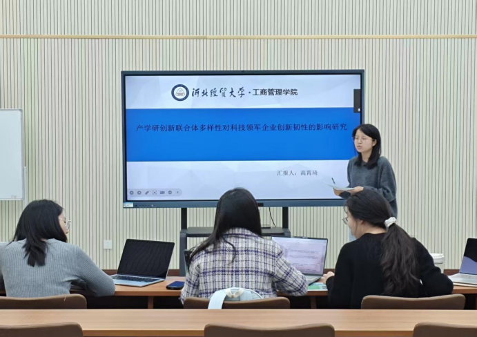 汇报人高霄琦以“产学研创新联合体多样性对领军企业创新韧性的影响研究”为题,以制造业科技领军企业为研究样本,从类型多样性、地理多样性、合作模式多样性三个维度考察了产学研创新联合体多样性对领军企业创新韧性的影响,为理解产学研合作在提升企业创新能力中的作用提供了实证依据。