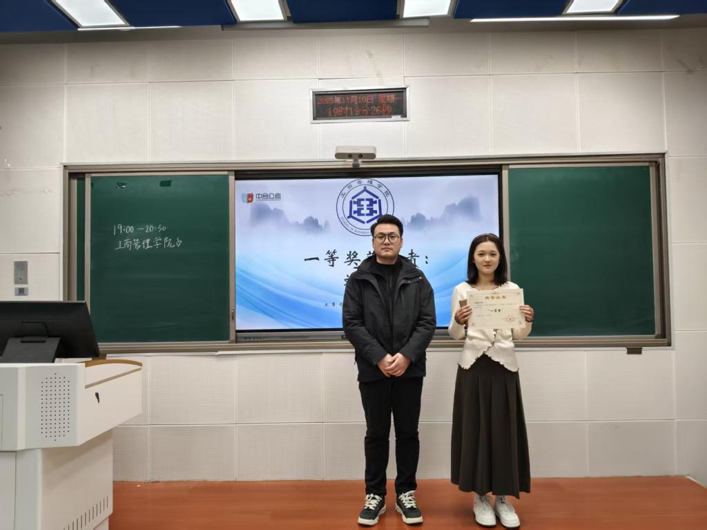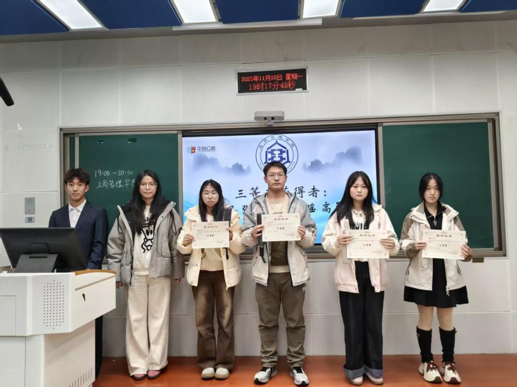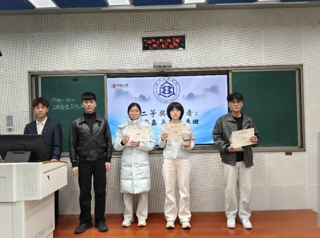 公务员模拟大赛决赛获奖名单揭晓,同学们依次登台领奖,由团委书记王晓东、中合公考赞助商郝亚雄代理及员工会执行主席宋泓霏依次为获奖学子颁发荣誉证书与奖品,对他们在赛事中展现的扎实知识储备和清晰答题逻辑给予高度认可。