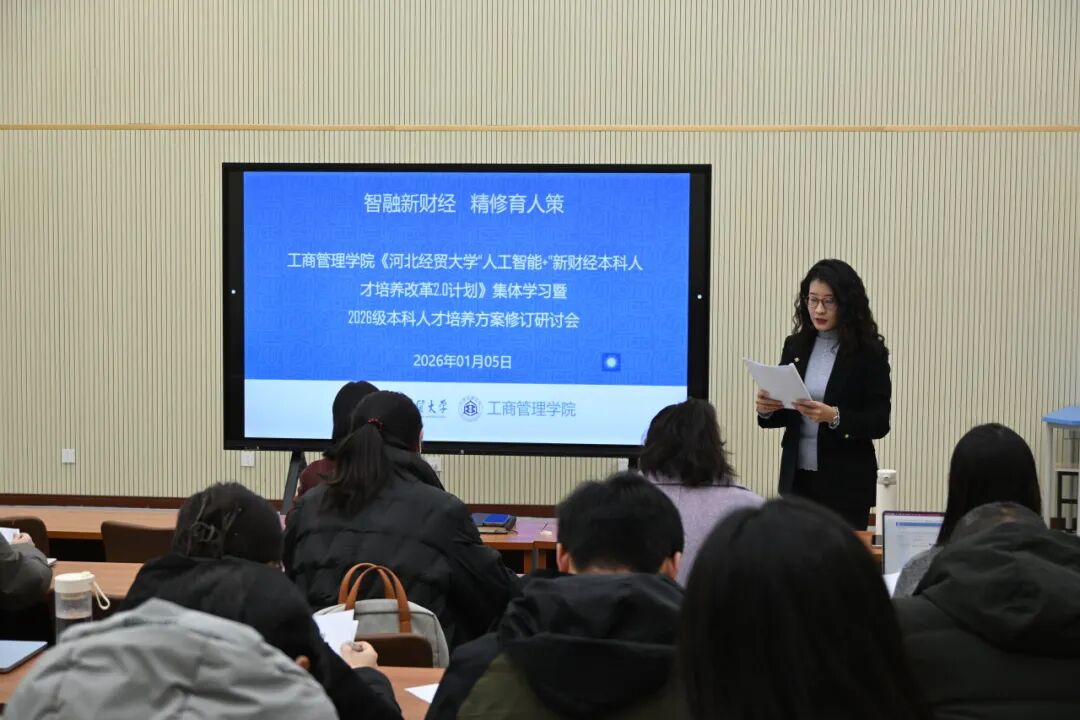 1月5日,必赢565net官网在MBA1教室召开《“人工智能+”新财经本科人才培养改革2.0计划》(以下简称《2.0计划》)集体学习暨2026级本科人才培养方案修订研讨会。会议以“智融新财经,精修育人策”为主题,聚焦人才培养方案升级、应用型专业转型、智慧课程建设、产教融合深化等核心议题,共谋新财经人才培养提质路径。院长李桂荣出席会议并讲话,副院长石晓飞、封雪韵,各系主任、副主任及骨干员工近30人参会。
