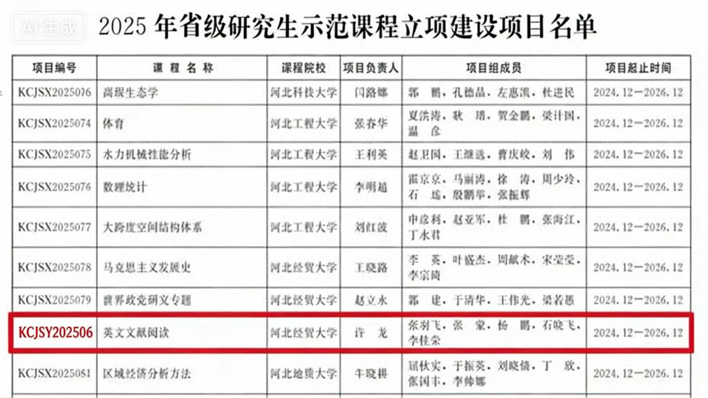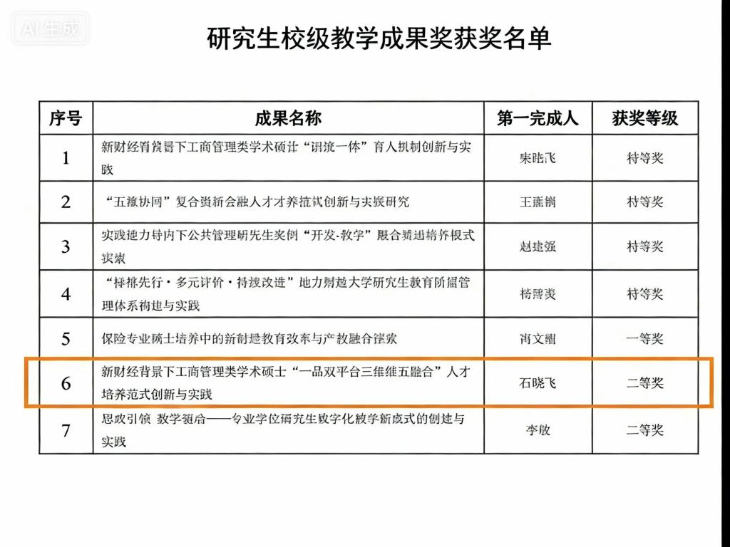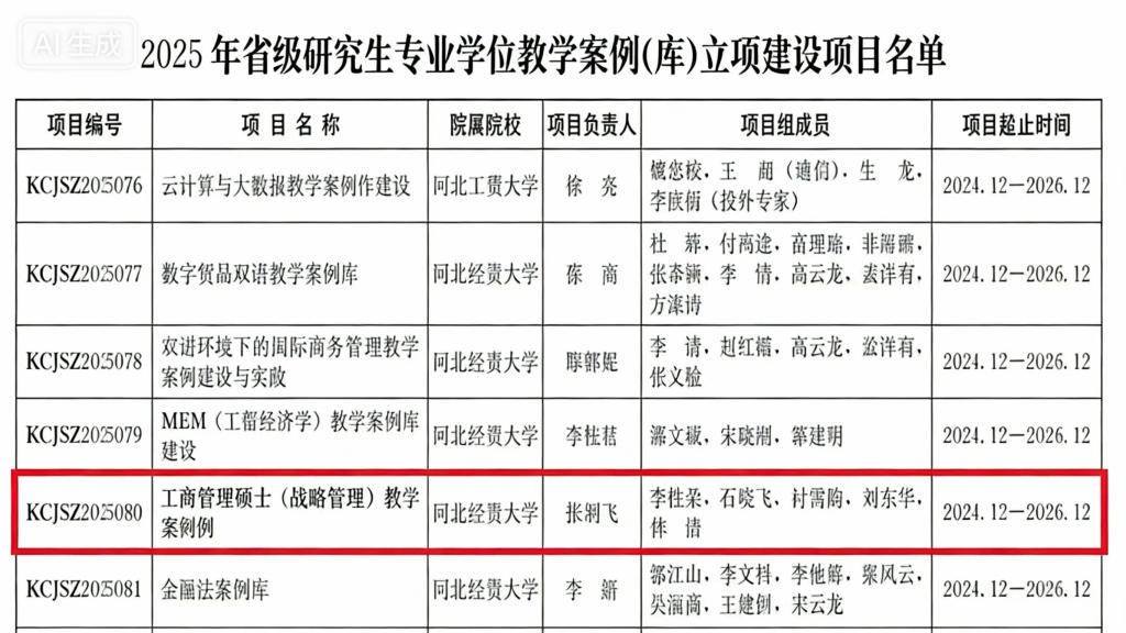 许龙副教授主持的《英文文献阅读》获批2025年省级研究生示范课程立项,张羽飞博士主持的《工商管理硕士<战略管理>教学案例库》获批2025年省级研究生专业学位教学案例库立项建设项目。