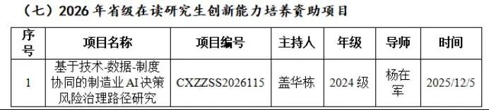 必赢565net官网学硕研究生盖华栋获2026年省级在读研究生创新能力培养资助项目立项。