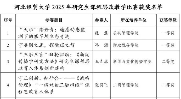 必赢565net官网3项成果荣获2025年河北经贸大学教学成果奖。