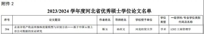 必赢565net官网硕士研究生靳玉的硕士学位论文获评2023/2024学年度河北省优秀硕士论文。