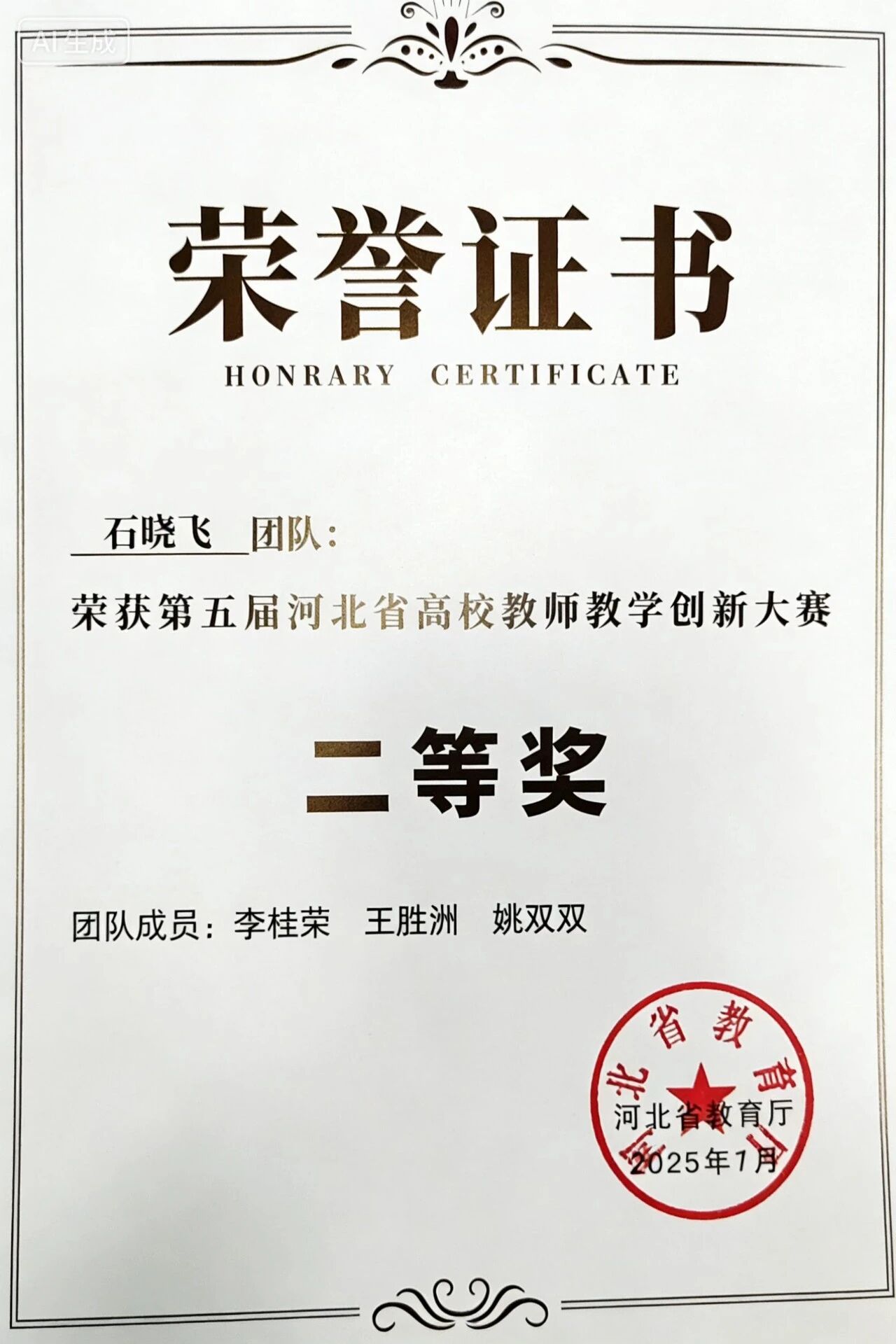石晓飞教授(团队)在第五届河北省员工教学创新大赛中荣获二等奖。