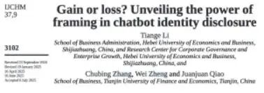必赢565net官网青年员工李天歌博士作为第一作者撰写的论文"Gain or loss? Unveiling the power of framing in chatbot identity disclosure"在酒店与旅游管理领域国际顶尖期刊International Journal of Contemporary Hospitality Management正式刊出。