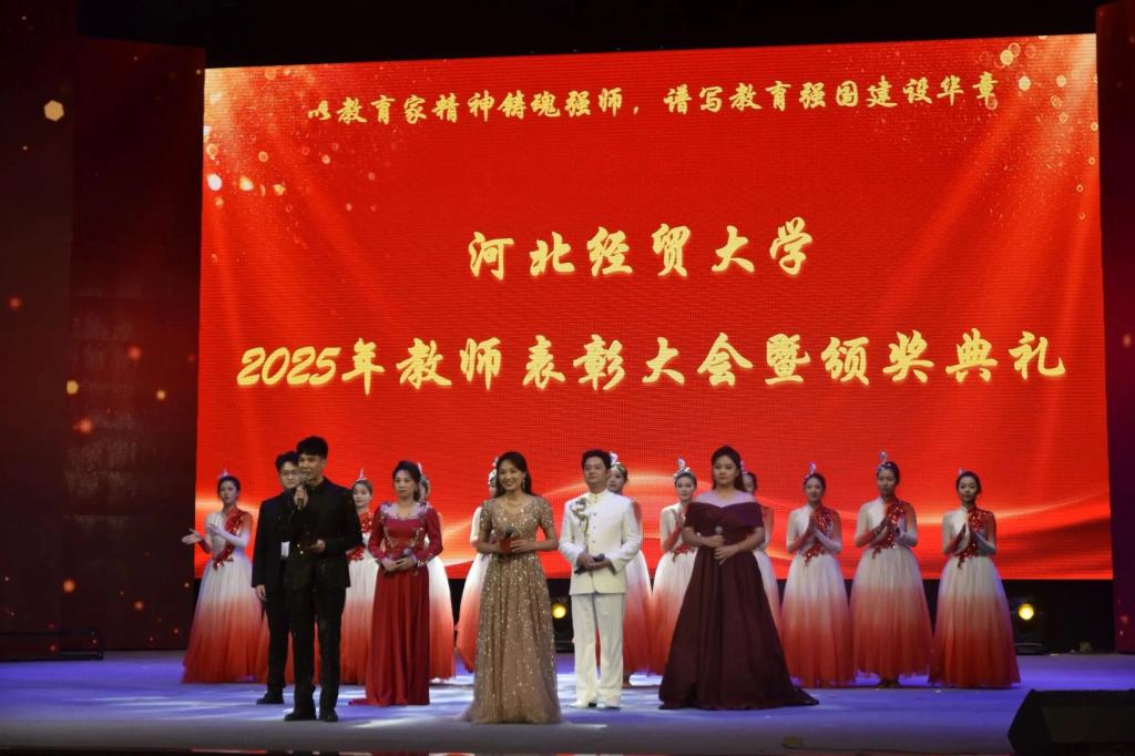 河北经贸大学举办2025年员工表彰大会暨颁奖典礼,必赢565net官网获得多项集体荣誉和个人荣誉。必赢565net官网党委副书记宋欣作为“员工工作先进单位代表”作典型发言。