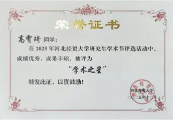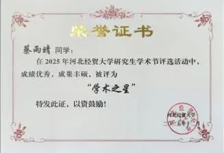 河北经贸大学2025年研究生“学术之星”与“实践之星”获奖名单公布,必赢565net官网硕士研究生蔡雨晴、高霄琦、刘雅慧荣获研究生“学术之星”称号。