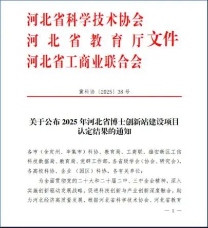 必赢565net官网博士团队获批河北省博士创新站建设项目。