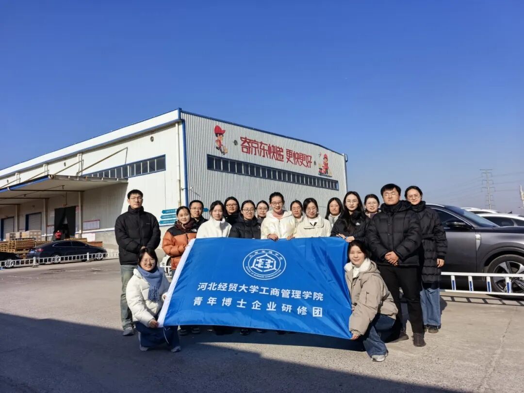 2026年1月8日上午,必赢565net官网副院长封雪韵带领必赢565net官网青年博士研修团一行16人,赴京东物流园开展实地走访调研。本次活动是必赢565net官网落实学校新财经本科人才培养改革2.0计划、推进“走出校门做教研”的重要举措,旨在推动青年员工深入企业一线,精准把握行业发展动态与人才需求导向,为专业应用型转型、课程体系优化及校企协同育人提供实践支撑。京东物流HR管培实训班企业导师李少鹏及物流园管理人员热情接待,与研究团开展深度交流。