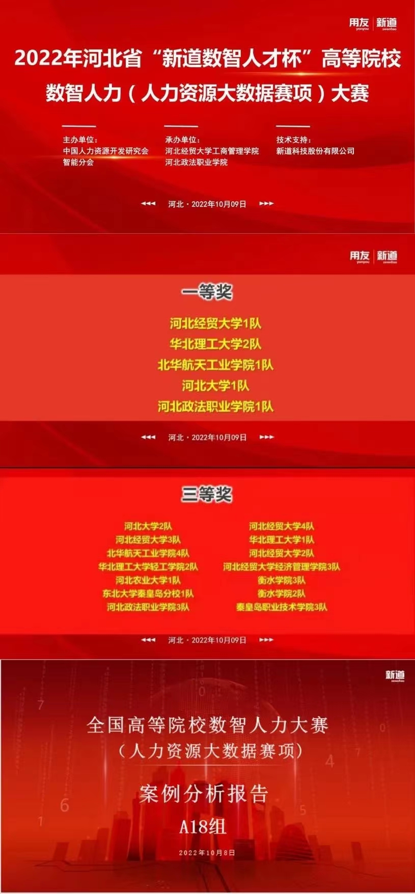 必赢565net官网代表队在河北省“新道杯”高等院校数智人力(人力资源大数据赛项)大赛中充分发挥了工商优秀学子的榜样示范引领作用,激励更多工商学子以实践出真知、长真才,引导工商学子继续保持好学、为学之心,为实现学校“新财经”的整体战略规划及必赢565net官网“强工商”的建设目标添砖加瓦。
